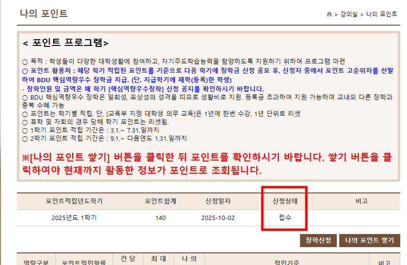 2025-2학기 BDU 핵심역량우수장학(舊, 포인트장학)신청 안내