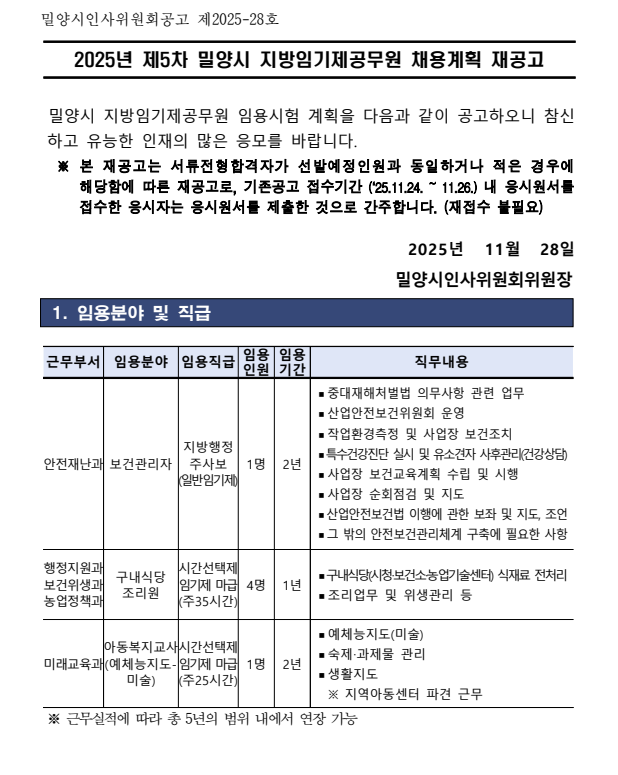 2025년 제5차 밀양시 임기제공무원 채용 재공고(28호).pdf