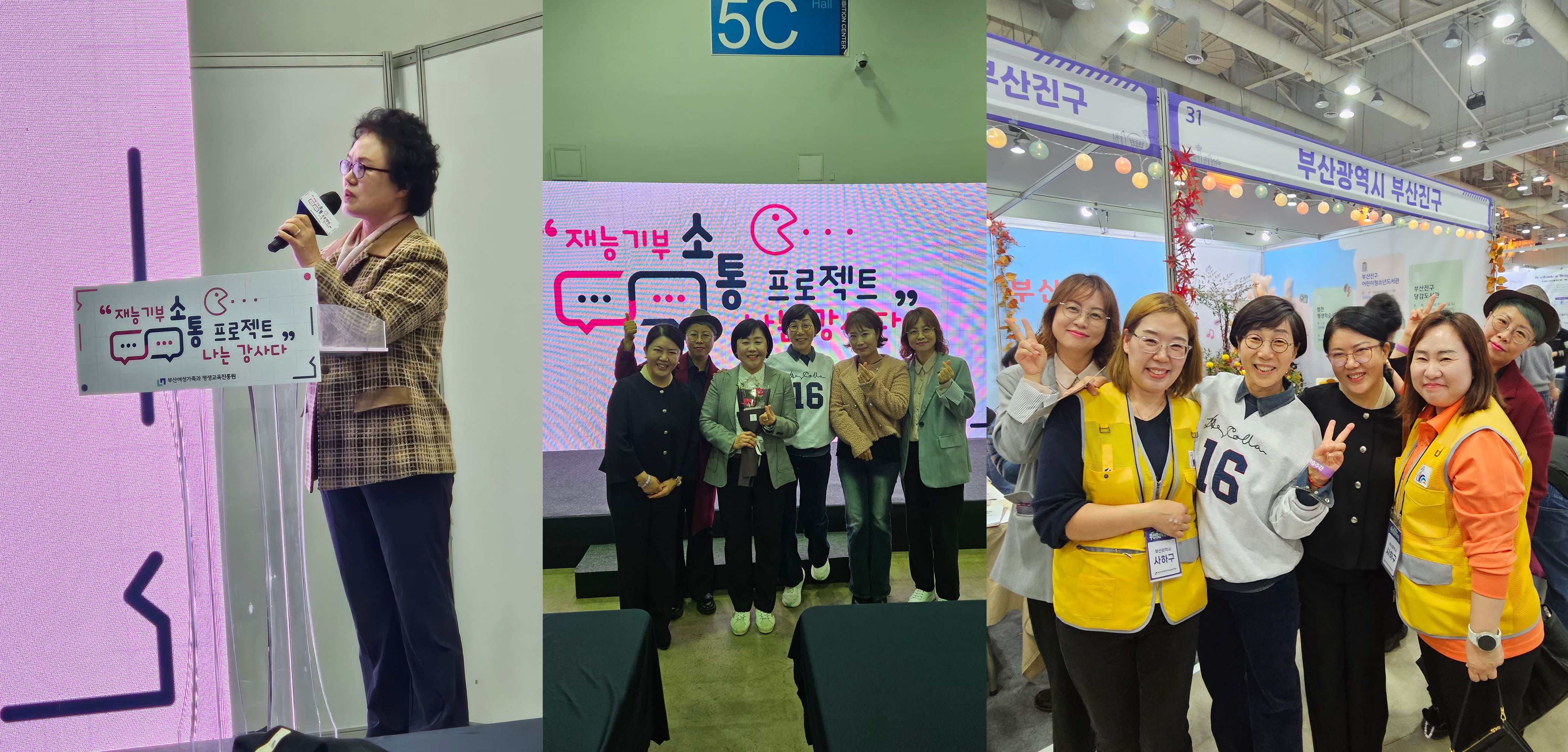 지난 11월 7일(금)~8일(토) 양일 간 부산 벡스코에서 개최된 이번 행사는 지역사회의 다양한 평생교육 프로그램과 체험활동 부스를 운영하였다. 우리대학 평생교육학과 재학생과 졸업생들 이 대거 참가하여 자신이 거주하고 있는 지자체의 평생교육 홍보 부스 체험 활동을 지원하고, 재학생 3명과 졸업생 1명은 재능기부 소통 프로젝트 “나는 강사다”에 선정되어 자신이 활동 하고 있는 평생교육강좌를 통해 지역사회 시민들과 소통하는 의미있는 기회를 가졌다.