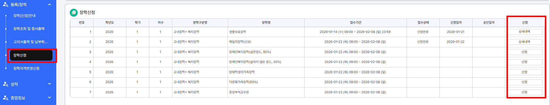 교내장학 대상자 등록(자동) |