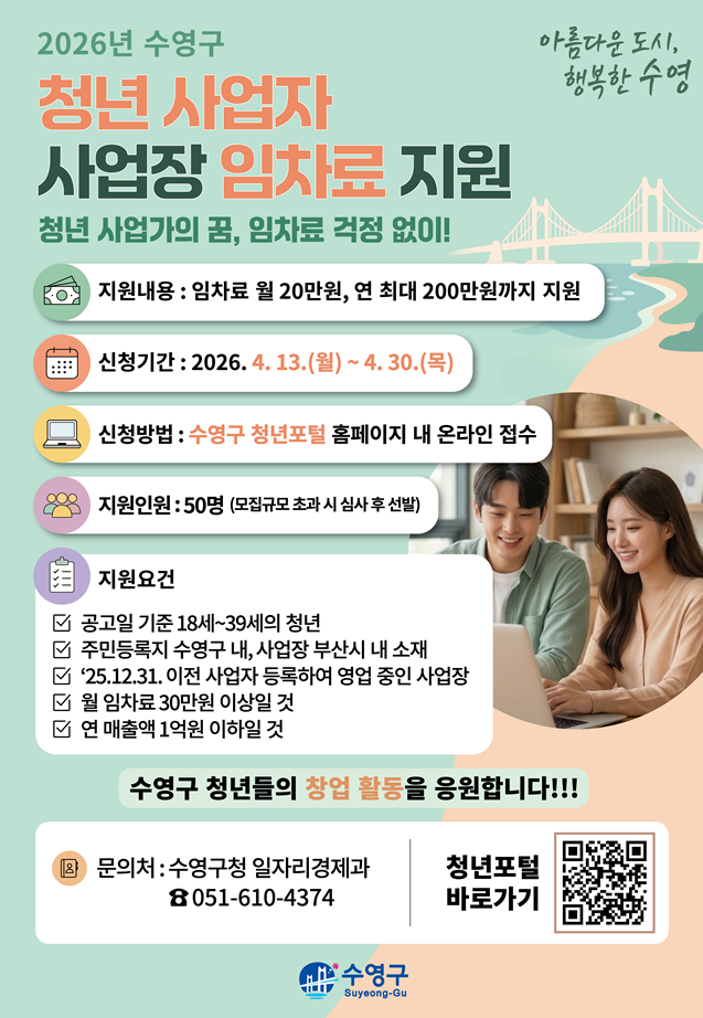 2026년 수영구 청년 사업자 사업장 임차료 지원