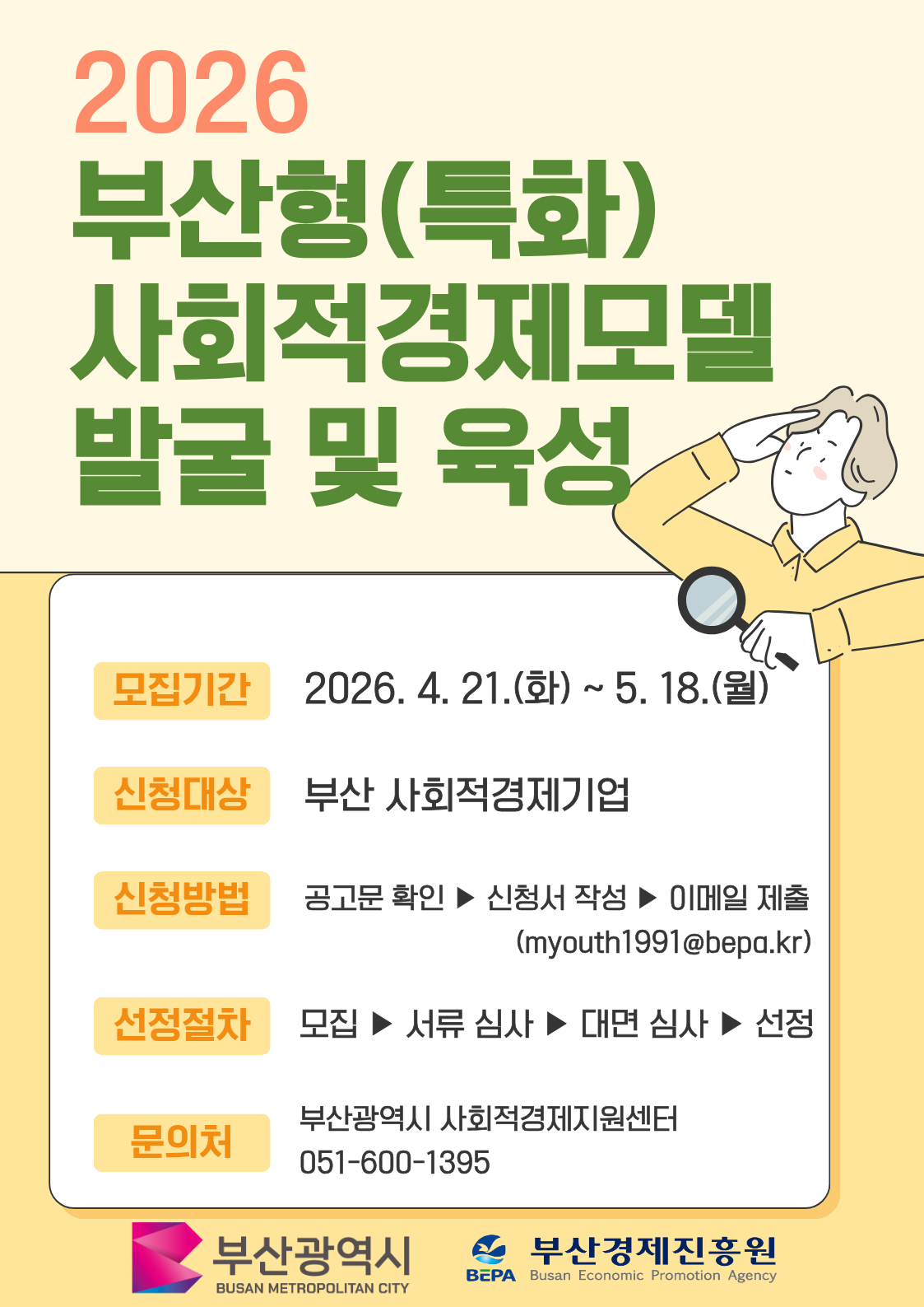 2026년 부산형(특화) 사회적경제모델 발굴 및 집중 육성