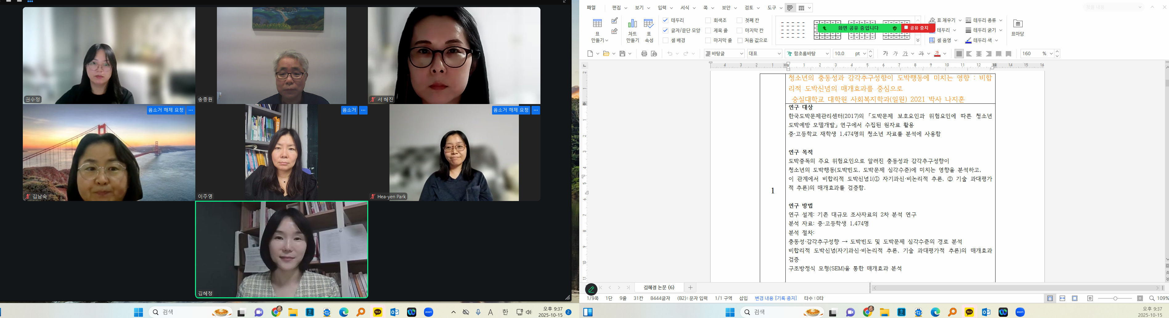10월 28일(화) 19시에 ‘상담심리학과 송종원교수 지도학생 스터디’를 실시하였다.