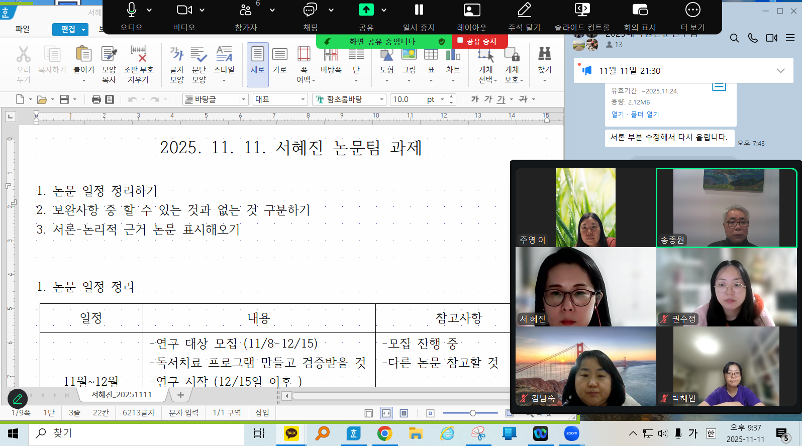11월 11일(화) 19시에 ‘상담심리학과 송종원교수 지도학생 스터디’를 실시하였다.