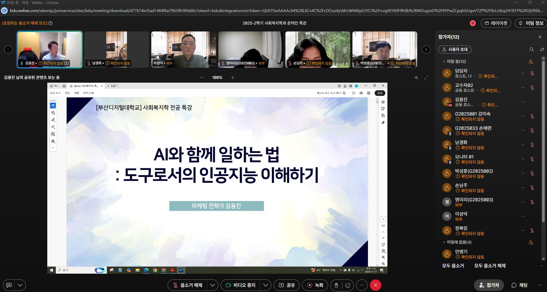 2025년 2학기 대학원 사회복지학과 특강이 2025년 11월 17() 19시 비대면으로 진행되었습니다.