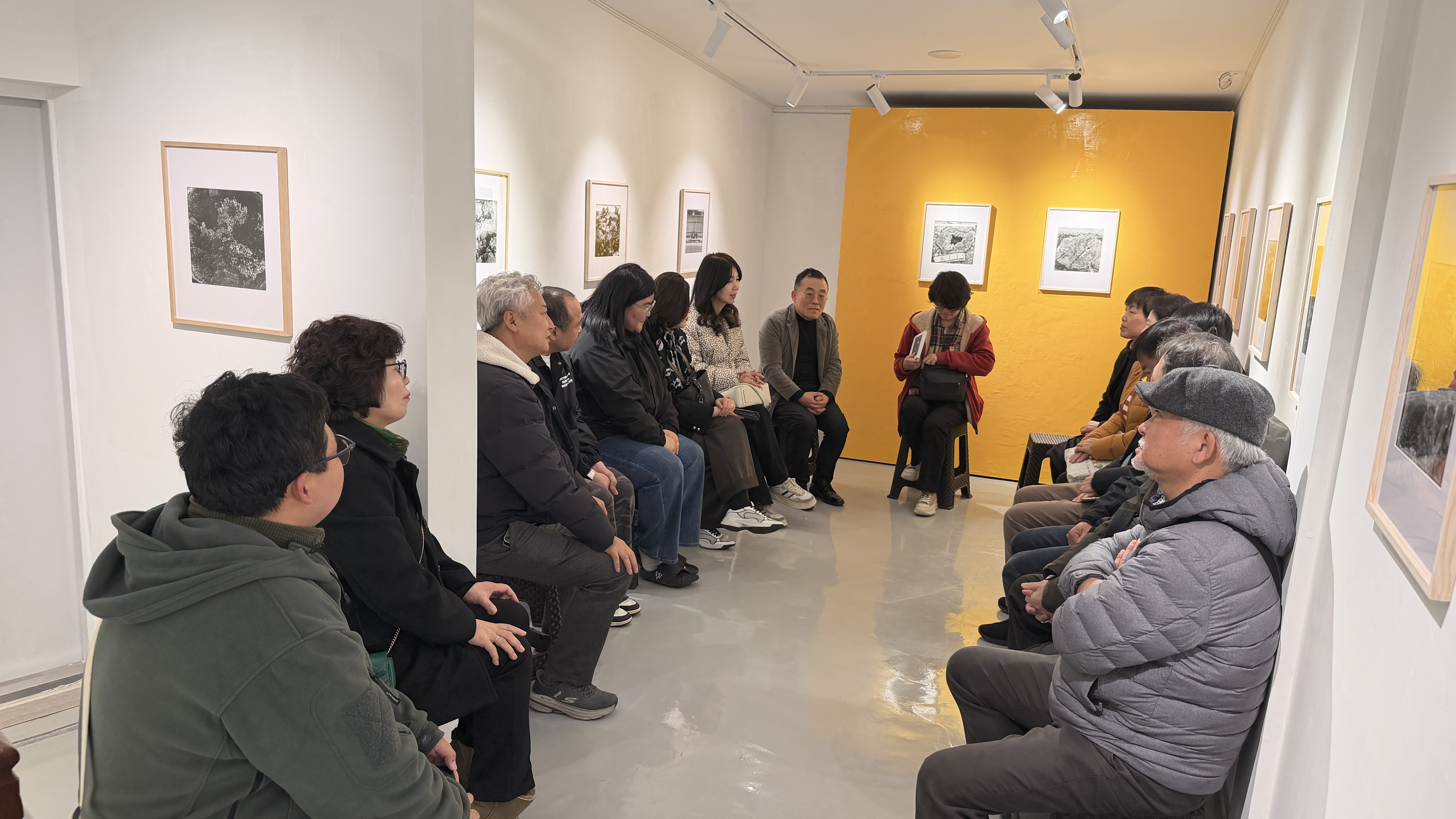 공휴일임에도 불구하고 먼 길을 마다치 않고 참석해 자리를 빛내주신 교수님들과 학우님들의 발길은 두 작가의 작품 세계를 더욱 풍성하게 채워주었습니다. 학과라는 울타리를 넘어 예술적 동반자로서 서로를 응원하는 이 모습이야말로 우리 학과가 가진 진정한 자부심이자 원동력일 것입니다. 시간을 견뎌낸 그루터기처럼, 그리고 흩어진 점들을 연결해 의미를 찾는 아포페니아처럼, 우리 학우들의 인연 또한 더욱 견고하게 이어지길 기대합니다.