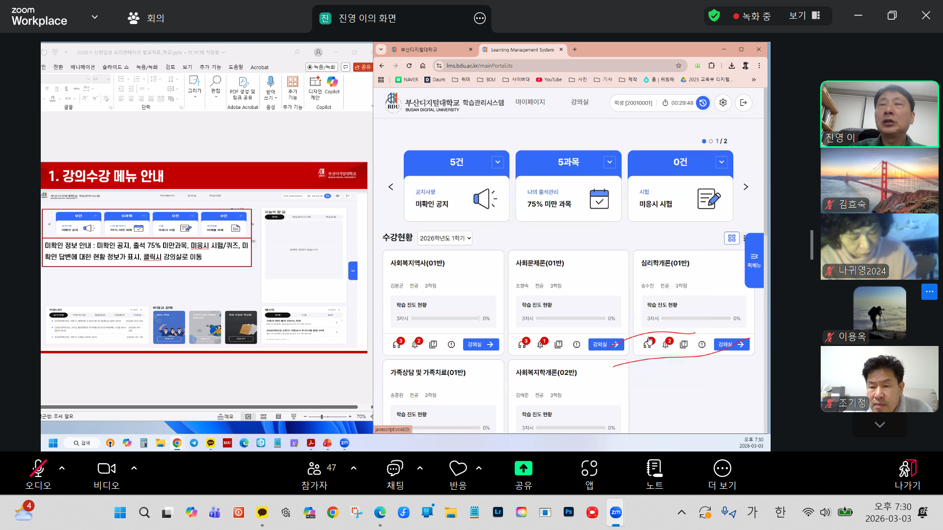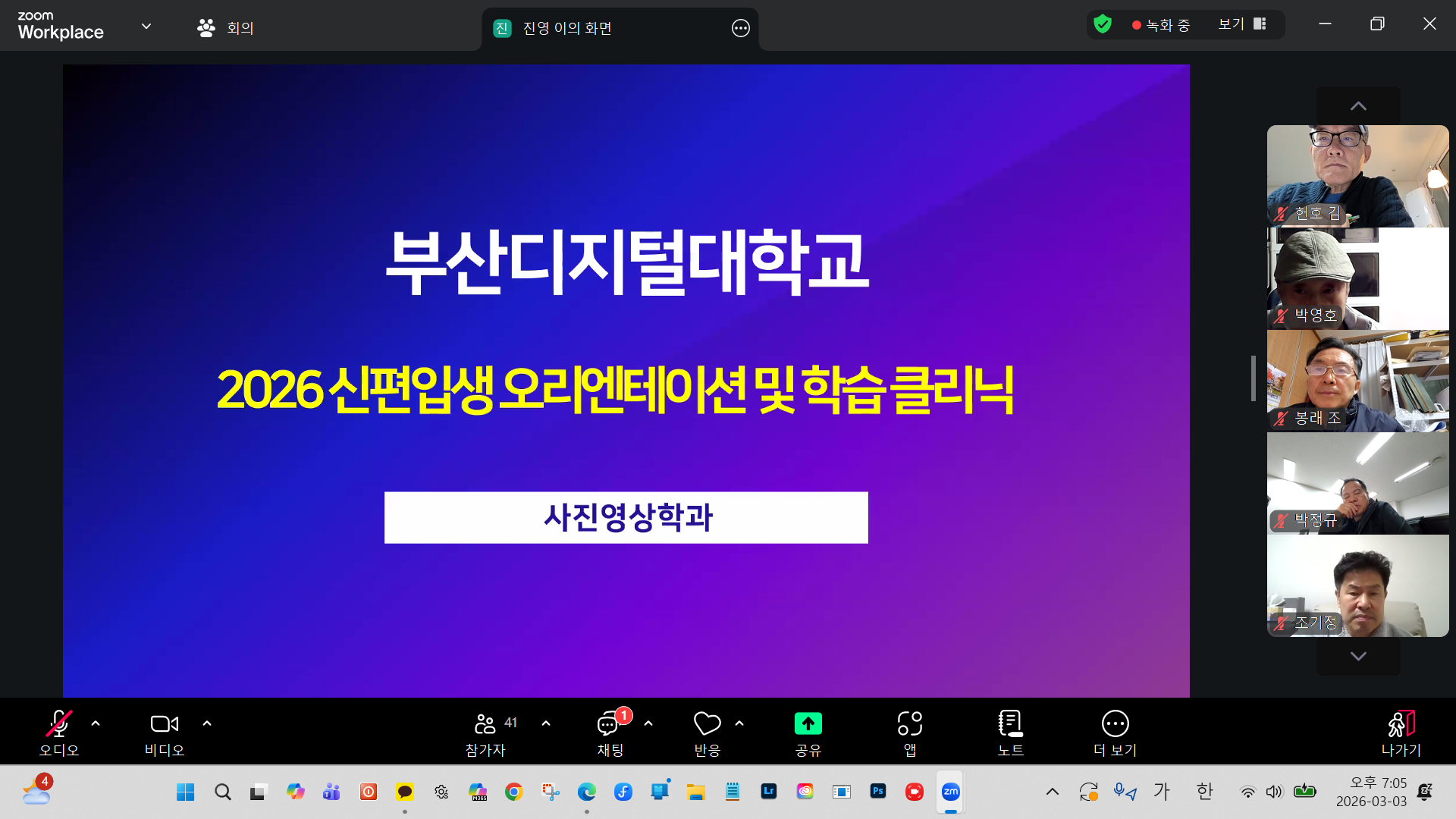 지난 3월 3일, 부산디지털대학교 사진영상학과는 줌(Zoom)을 통해 '신·편입생 학습클리닉 및 개강모임'을 성황리에 개최했습니다. 전국 각지의 학우들이 접속한 이번 온라인 광장은 바쁜 일상 속에서도 배움의 셔터를 누르려는 뜨거운 열기로 가득 찼습니다.