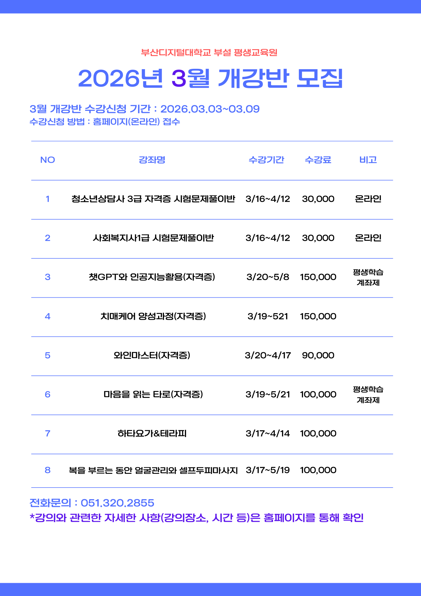 [평생교육원 일반과정] 3월 개강반 일반과정 수강생 모집