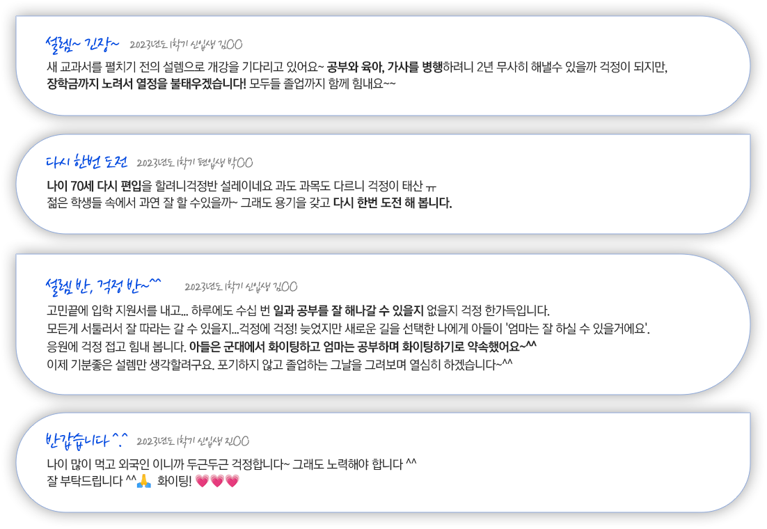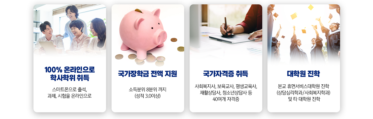 입학에서 졸업까지 매 학기 수업료의 30%를 감면해드립니다.