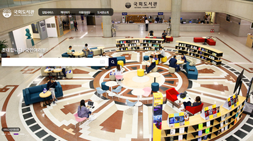세계의 지식정보를 수집하여 국회와 국민에게 제공, 의회정보서비스, 법률정보서비스, 전자도서관, 한국학술정보협의회 메뉴로 구성