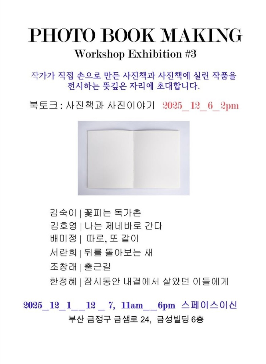 ◦ 북토크 : 사진책과 사진이야기 12월6일(토) 14:00