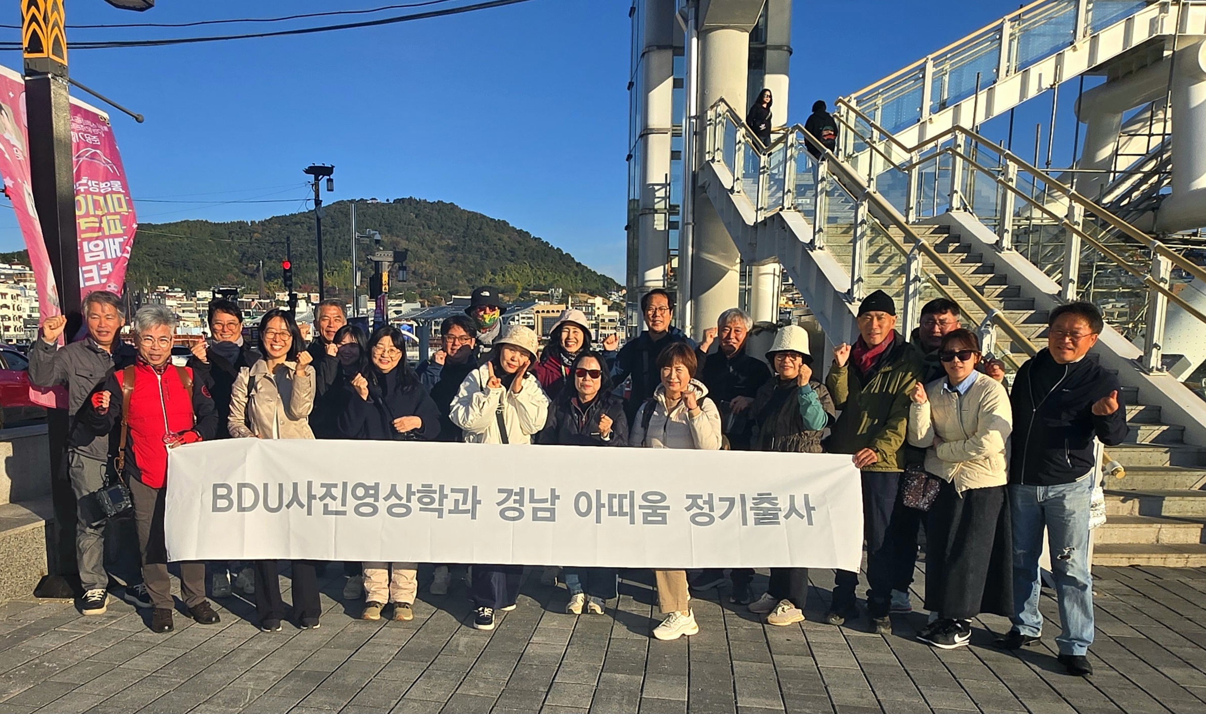 부드러운 가을빛이 남해안의 고도(古都), 통영에 내려앉던 날이었습니다. 11월, 부산디지털대학교 사진영상학과 아띠움 경남 모임은 정기출사라는 이름으로 통영의 서정적인 풍경 속으로 발을 들였습니다. 이번 출사가 유독 특별했던 건, 경남 모임을 넘어 학과 모임까지 함께하는 '연합 프레임'을 구성했다는 점이었습니다. 여기에 학과대표의 든든함과 이진영 교수님의 깊이 있는 시선이 더해지니, 현장의 열기는 마치 갯바람에도 쉽게 식지 않는 필름 카메라의 셔터처럼 뜨겁게 달아올랐습니다.